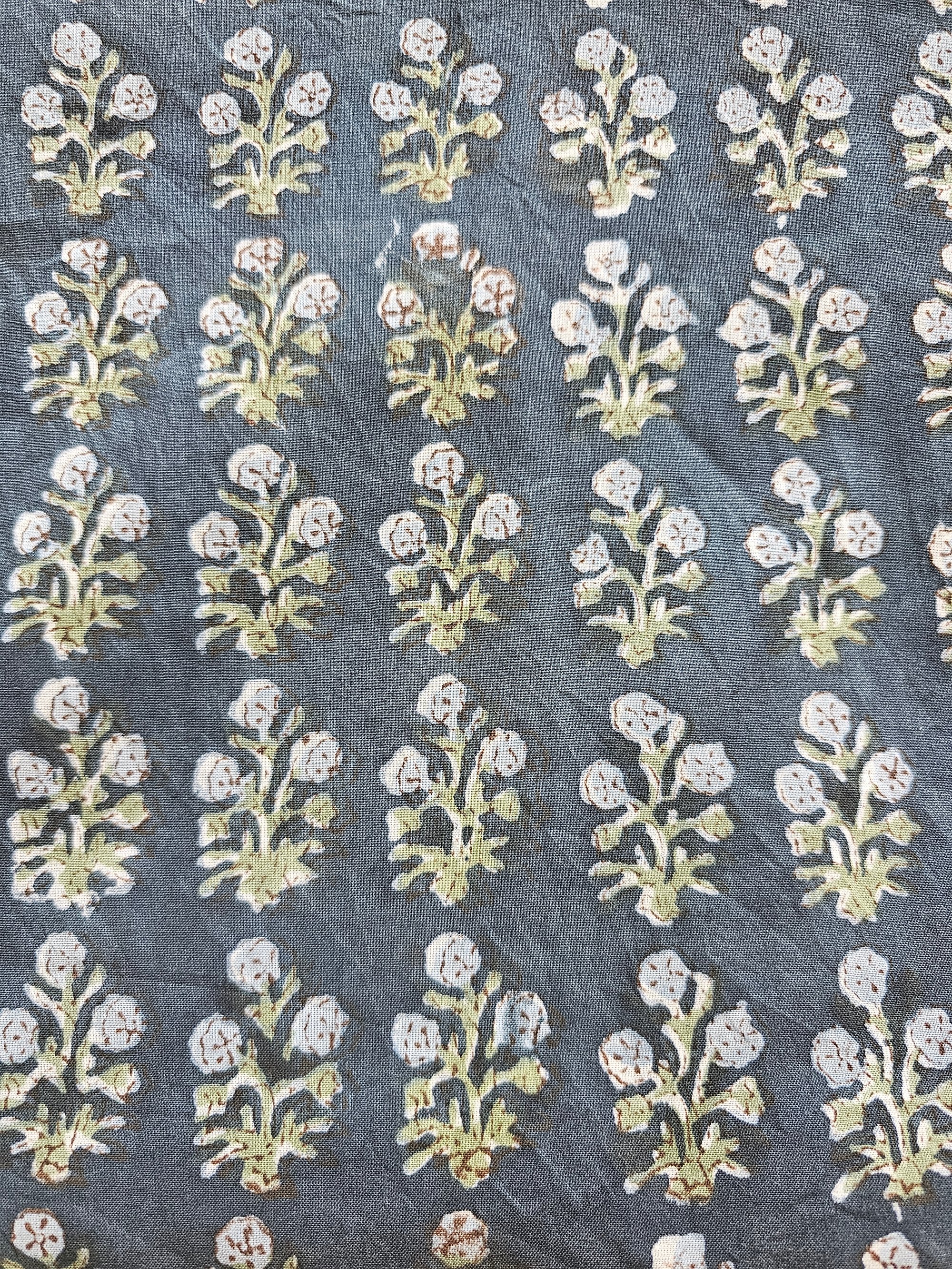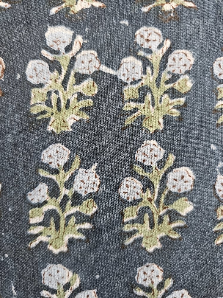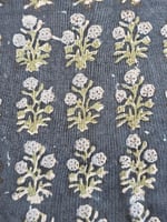 Tissu indien en coton avec un fond marine avec des fleurs beiges.