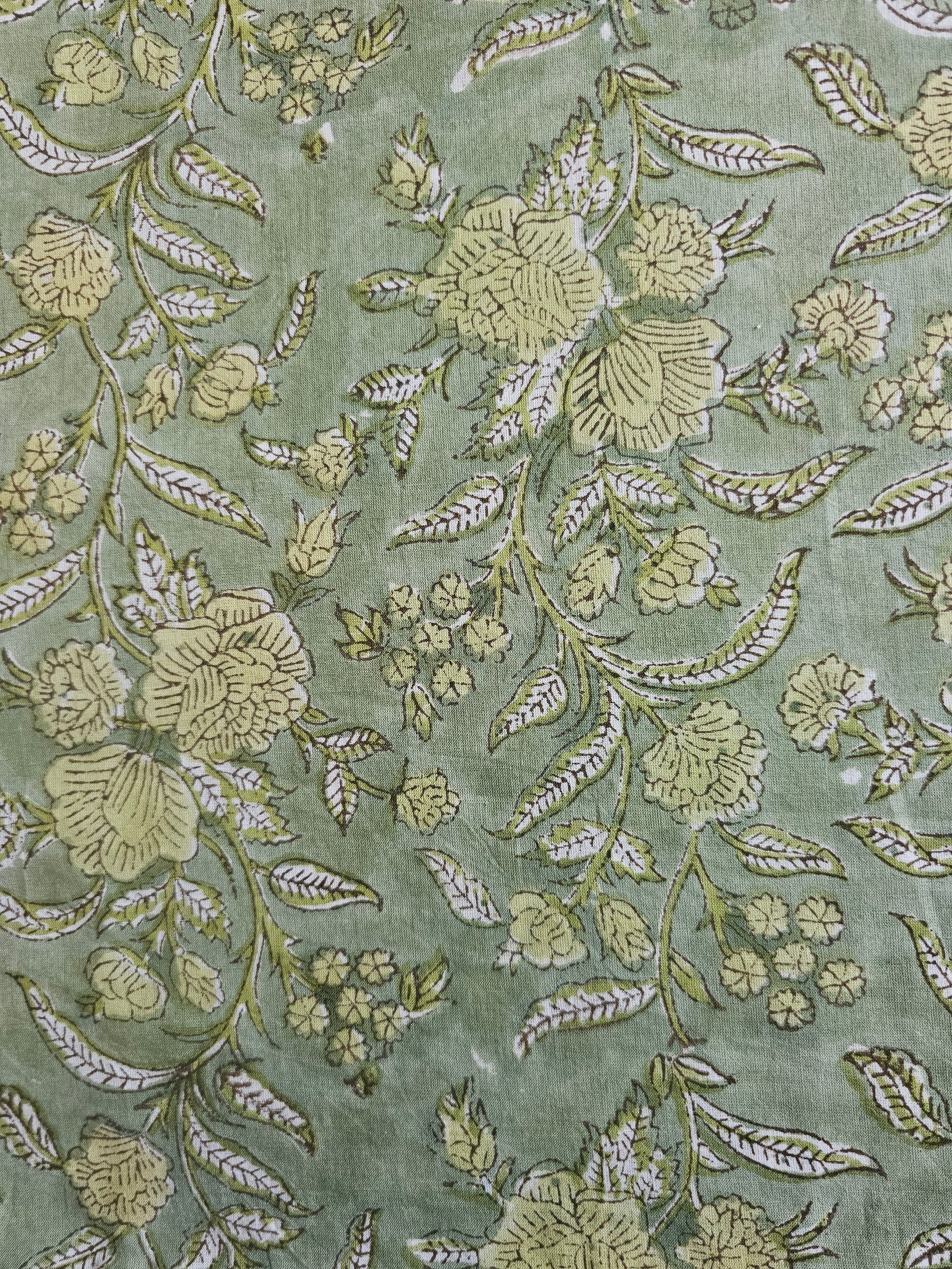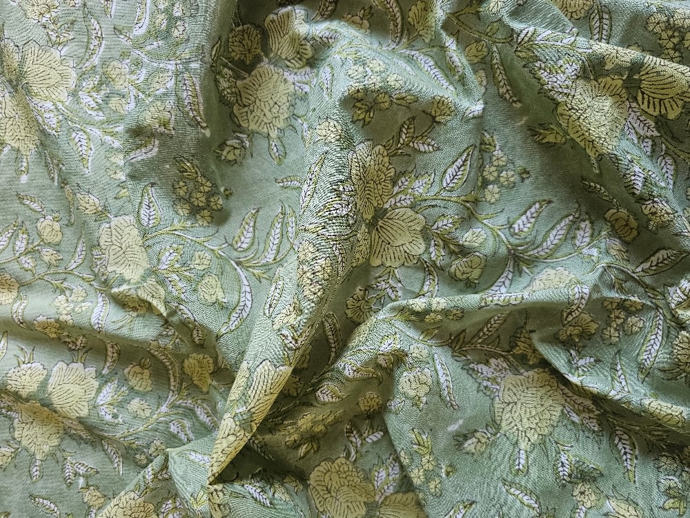 Tissu indien en coton avec un fond marine avec des fleurs beiges.